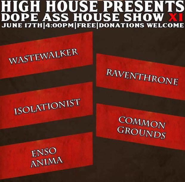 We will be having our grand return this Saturday! June 17!! And we are extremely excited to get back out there! We will be playing with some great and very talented bands!! Wastewalker, Isolationist, Common Grounds, and Enso Anima.